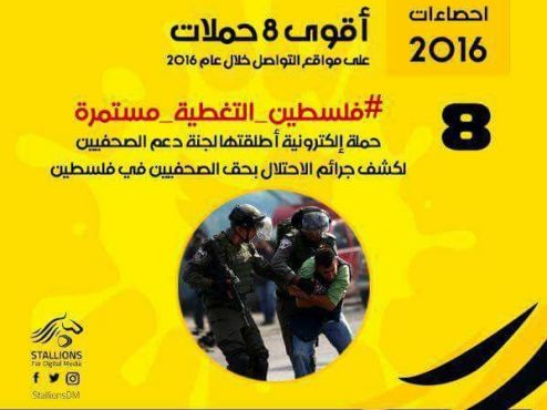 أكدّت لجنة دعم الصحفيين الفلسطينيين أنّ الحملة الإلكترونية التي أطلقتها في يوم الوفاء للصحفي الفلسطيني بعنوان "#فلسطين_التغطية_مستمرة" لتسليط الضوء على الإنتهاكات التي يتعرض لها الصحفيون الفلسطينيون حققت نجاحاً كبيراً، حيث حصدت على متابعة أكثر من 3 ملايين على موقع "تويتر"، وأمكن إيصال الهاشتاغ إلى أكثر من 40 مليون حساب على الموقع.