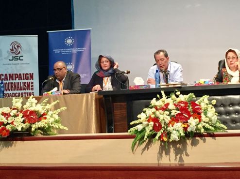 The Secretary General of the Journalist Support Committee, Mr. Yaser Al-Sayegh, led an international press delegation which included the Vice President of the Association of European Journalists, Ms. Saia Tsaousidou, as well as the Secretary General of the association, Mr. Tibor Macak, participated in the 9th session of the General Assembly of the Islamic Radio and Television Union held in Mashhad (Iran) from the 2nd to the 4th of July 2017.