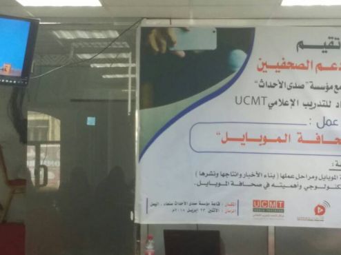 أقامت لجنة دعم الصحفيين في اليمن وبالشراكة مع مؤسسة صدى الأحداث للإعلام والتنمية ومركز الاتحاد للتدريب الاعلامي UCMT، ورشة عمل حول صحافة الموبايل .