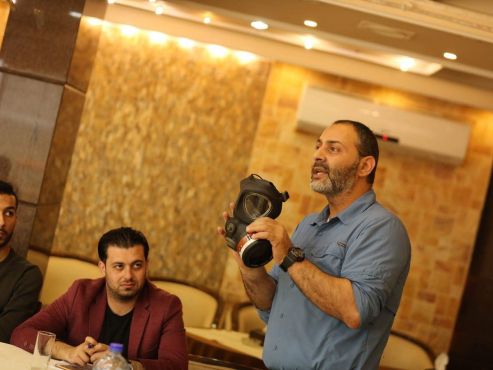 حلّ المصور خليل حمرة ضيفًا على الورشة لمشاركة خبراته في الميدان مع المتدربين لاسيما حول السلامة المهنية للصحفيين أثناء التغطية من الميدان.