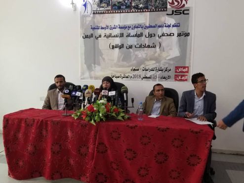 عقدت لجنة دعم الصحفيين بالتعاون مع مؤسسة الشرق الأوسط للتنمية، صباح الأربعاء، مؤتمراً صحفياً حول المأساة الإنسانية في اليمن تحت شعار "شهادات من الواقع".