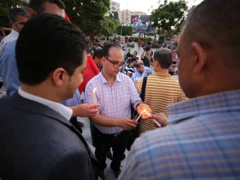 وشاركت العديد من المؤسسات النقابية والاطر الصحافية الى جانب المؤسسات المجتمع المدني والعلماء في الوقفة التي نظمت وسط مدينة غزة .