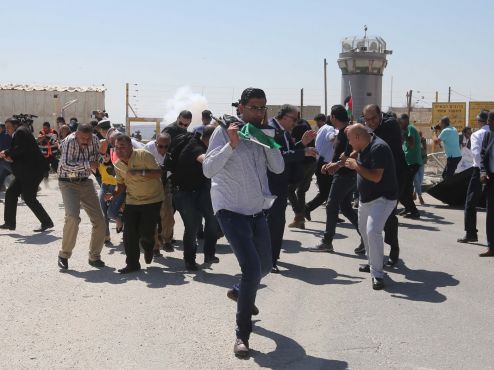 أصيب عدد من الصحفيين، اليوم الثلاثاء، بحالات اختناق، جراء استنشاقهم الغاز المسيل للدموع، الذي أطلقته قوات الاحتلال الصهيوني صوب الذين اعتصموا قرب معسكر "عوفر" غرب مدينة رام الله، تضامنًا مع زميلهم مراسل تلفزيون فلسطين علي دار علي، المعتقل منذ 20 يومًا.