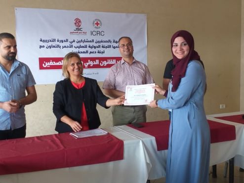 ووجّه المشاركون من الصحفيين التحية للجنة دعم الصحفيين واللجنة الدولية للصليب الأحمر والهلال الأحمر الفلسطيني.