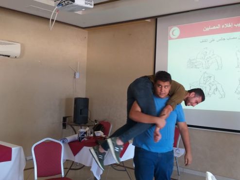وقدّمت طواقم من الهلال الأحمر تدريبًا نظريًا وعمليًا لكيفية التعامل مع الجروح والكسور والصدمات والإخلاء في أوقات الطوارئ والأزمات.
